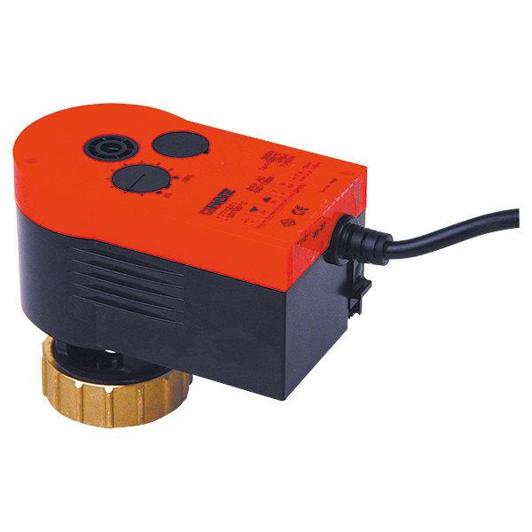 1 7712 50, 1 7712 51 - Operated by heating controller for 2-point/3-point control. Two-part body of self-extinguishing plastic. Bracket of plastic and union nut of brass for valve attachment. Disengageable gearbox for positioning of the valve and manual adjustment. Installation vertical to horizontal, non-suspended.